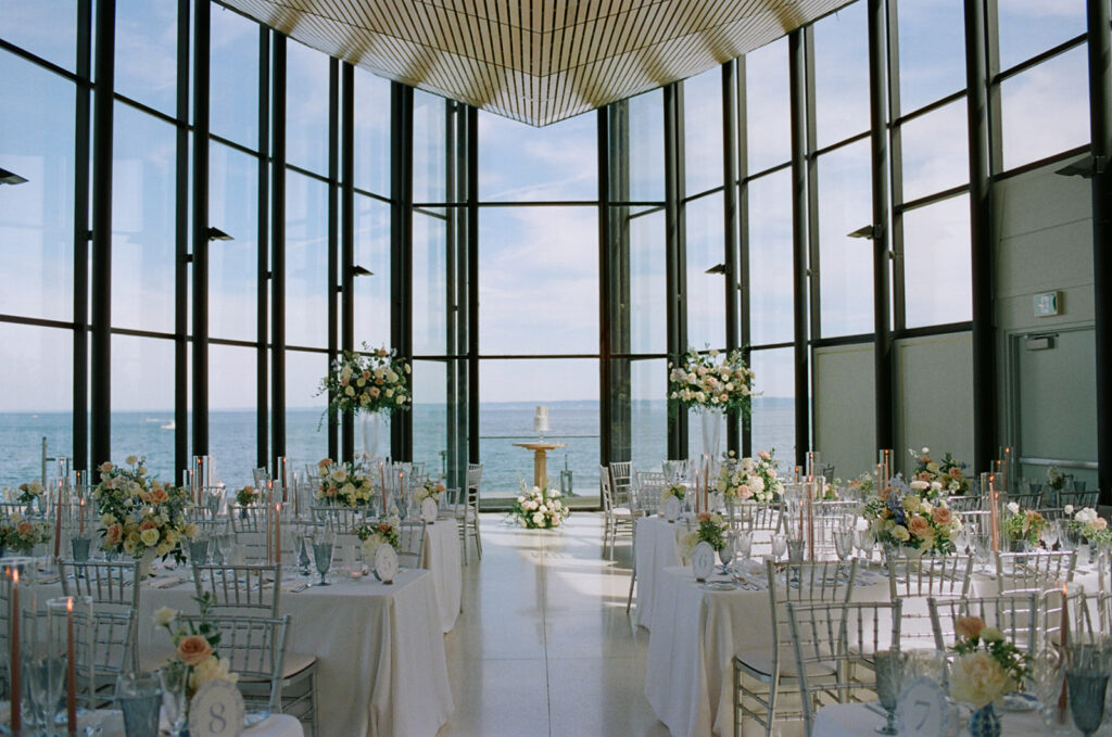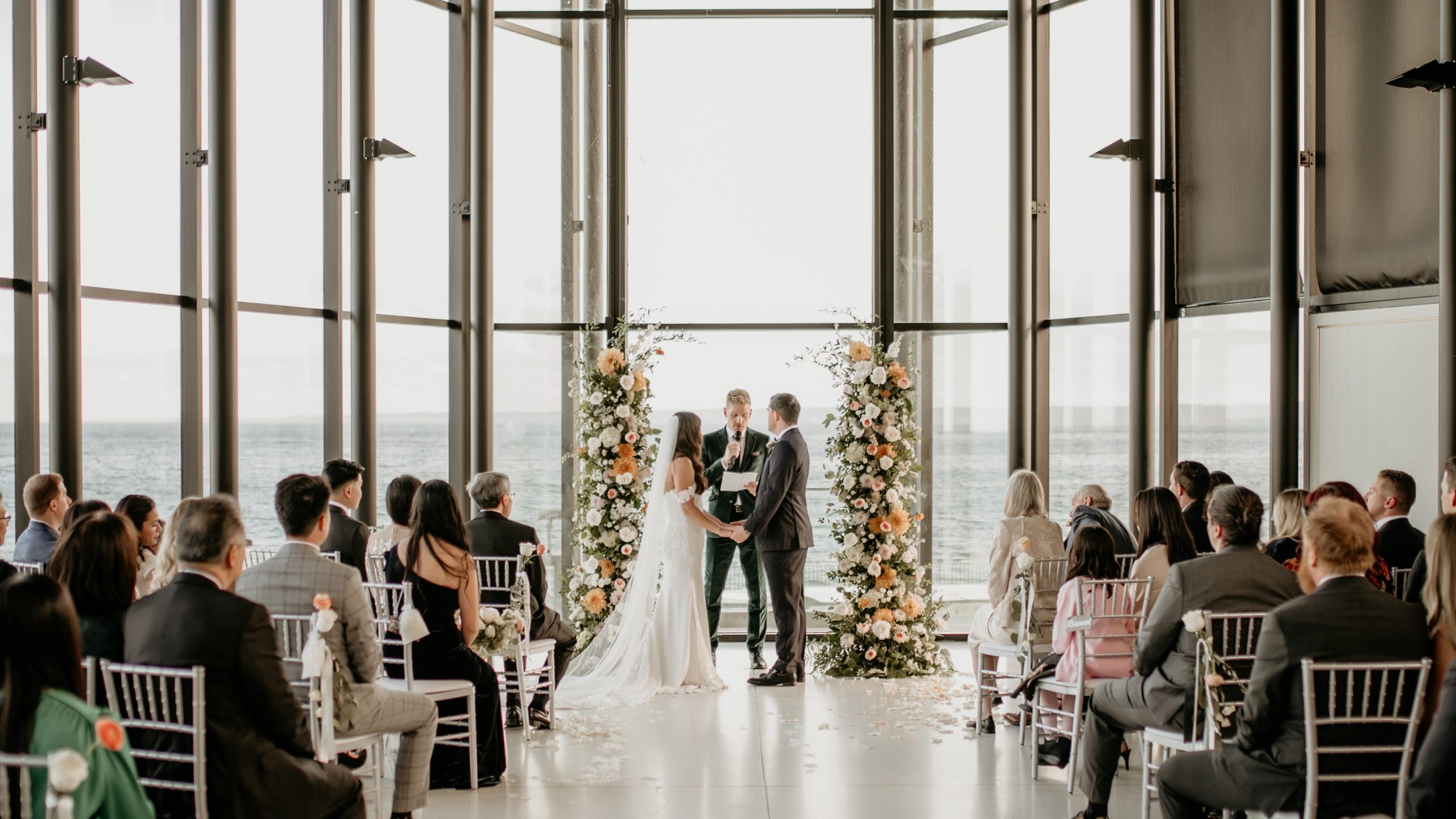 Spencer’s does not provide an outdoor wedding venue. However, guests are invited to The Observatory for both the ceremony and reception. The Observatory features striking 30-foot glass walls that provide sweeping panoramas of the lake and sky, creating a stunning backdrop for a memorable dinner and dance celebration.
